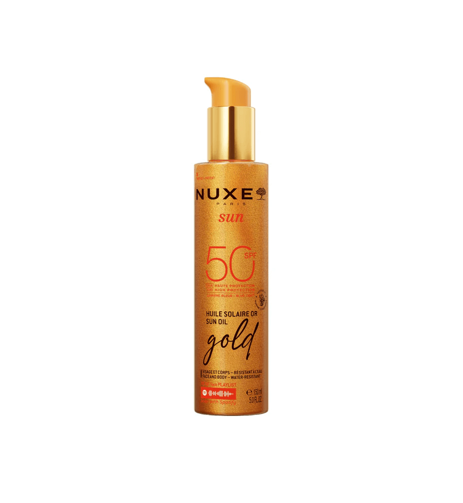 Este Aceite Bronceador Gold SPF50 Rostro y Cuerpo de Nuxe, garantiza una protección de amplio espectro frente a los UVA/UVB y a la luz azul. Ofrece una protección celular antiedad reforzada, al tiempo que previene la aparición de manchas.